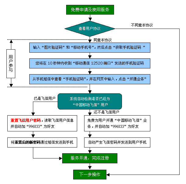 注:用戶可根據(jù)重置或新產(chǎn)生的飛信密碼,登錄進(jìn)飛信客戶端修改密碼。